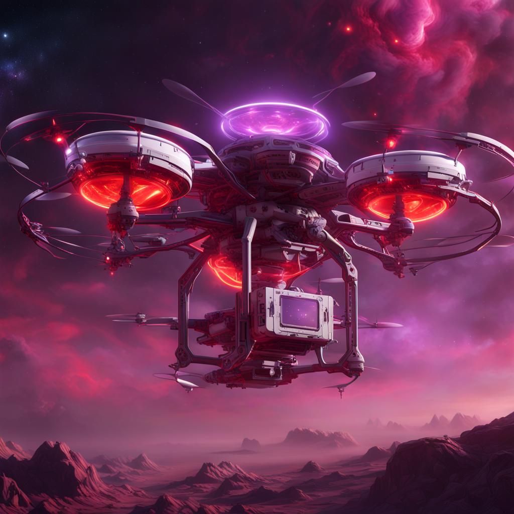 drone ( nuclear powered ) with infinite fuel , coloured red and white